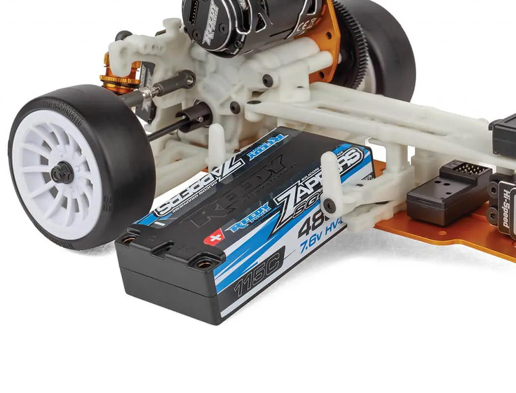 - Competition, low friction Team Associated drift tires included.