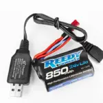 • 850mAh Li-Ion 7.4V 2-cell battery and charger
