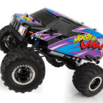 Designed not only for scale looks with realistic chrome wheels, chevron-style tires, and retro-styled van body, the MT12 is built for car-stomping action as well. The steel ladder frame chassis provides the perfect backbone for this rugged little monster. The 4-link suspension, threaded shocks, and soft rubber tires give the grip and performance needed to smash over cars or through dirt and mud. Transferring power to the ground is a compact 3-gear transmission, plastic low-friction slider-type drive shafts, front steel CVA axles, and metal-shield ball bearings.