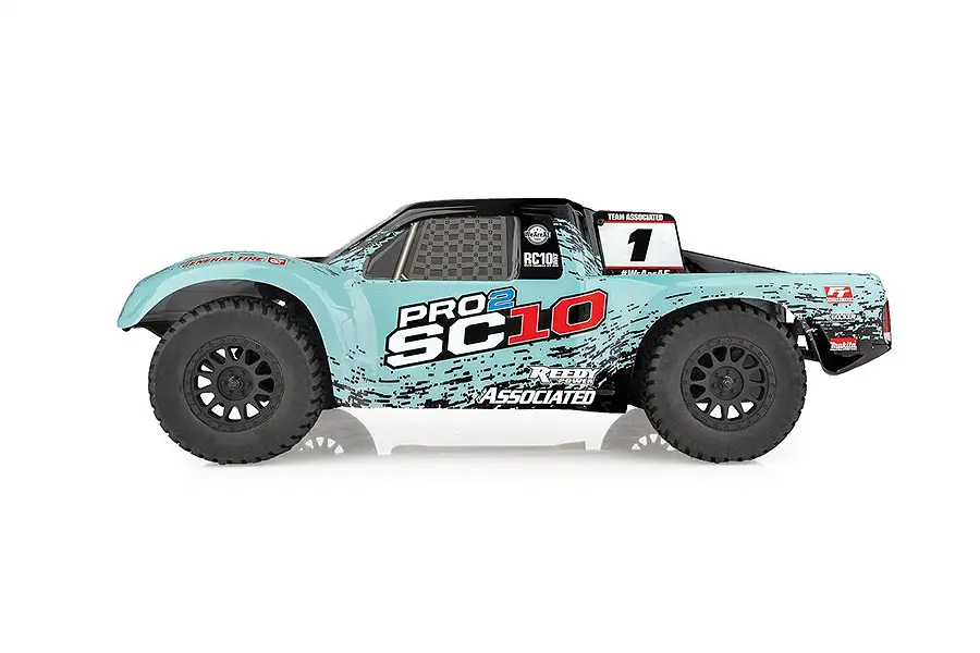 Team Associated’s Pro2 SC10 is a Ready-To-Run RC replica of the Pro 2 trucks driven in Off Road Racing. The Pro2 SC10 features a rear motor short-course chassis that uses many of the same parts from the widely successful RC10SC5M platform. Adjustable aluminum big-bore, coil-over shocks, a sealed-gear differential, and heavy-duty CVA driveshafts are all features that come standard on the Pro2 SC10. A powerful water-resistant Reedy electronic speed controller and 3300kV electric motor power the Pro2 SC10 for hours of high-speed fun. To handle the power, the Pro2 SC10 comes equipped with realistic MethodTM Race Wheels and tires specifically made to handle any off-road condition.
