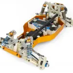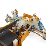 Independent suspension with hard anodized coil-over shocks help smooth out the bumps. Precision molded; nylon suspension components can be easily custom colour dyed. Long front A-Arm/Ball Joint design permits static camber, camber rise, caster, ride height and spring rate tuning to suit every type of track.