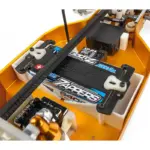 The smooth undercarriage of the RC10’s aluminum monocoque tub and special gearboxes provide maximum ground clearance.