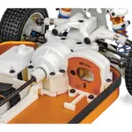 Bring the golden era of RC racing into the modern age with this rally-bred powerhouse, outfitted with a new aluminum gold tub chassis plate and iconic RC10 livery decal sheet. The clear 3-piece rally body set, complete with rear bumper and wing, delivers aggressive styling and aerodynamic performance, while injection-molded brake calipers and rotors add realistic scale detail. New rally shock towers, gold anodized aluminum shocks, and a fully adjustable front suspension with upgraded upper arms and turnbuckle set give you the precision handling needed to dominate any surface.
