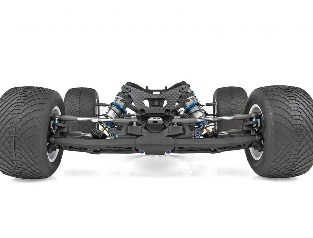 Champions by Design. The RC10T7 shares key components with the RC10B7 and RC10B7D Team Kits, making it easier than ever to run multiple classes at the same time. The primary suspension update is to lower the CG with shorter 25mm long front and 31mm long rear 13mm big bore shocks. The new chassis design is a stronger truck version of the RC10B7 buggy design and gets a new truck specific gull wing long arm suspension to improve grip and predictability in all conditions. On top of that, the kit includes updated zero KPI steering blocks and updated caster blocks, along with the legacy B7 features for tuning the front end feel. The new steel front inner hinge pin brace and updated B7 V2 caster block add to front end durability. The new RC10T7 offers the same mounting locations along with anti-roll bar hardware as the RC10B7 while pairing nicely with wide mount anti-roll bars that fit the new suspension arms.