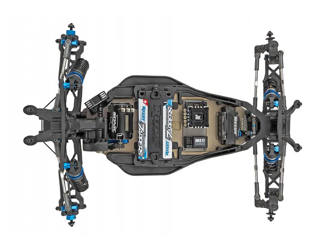 Based on Team Associated’s RC10B7 platform, the RC10T7 Team Kit is the next iteration of the successful truck platform. Design goals were to lower CG, add durability, and incorporate the RC10B7 adjustability and performance. Engineers inside Team Associated’s Area 51 first priority was the design of the new 3-gear laydown transmission to reduce drag and transfer all of the power to the larger truck tyres.