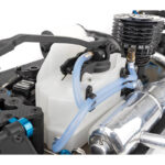 - Fuel tank with an ergonomically designed lid puller, high capacity, quick reference fuel markings, and 1-, 2-, and 3cc stackable volume inserts for volume adjustment at sanctioned events.