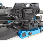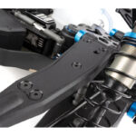 - RC8B4 rear chassis brace is mounted centrally to the gearbox, which reduces material fatigue, centralizes shear forces, and improves the life of rear end drivetrain parts. There are three different chassis flex options using two chassis hole mounting locations and an optional turnbuckle ball for flex in more degrees of freedom.
