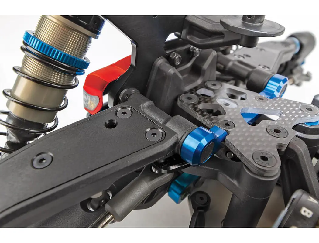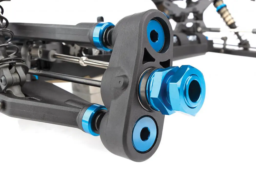 - RC8B4 rear hub features a symmetrical left and right common design with axle height inserts for adjustable roll center tuning options.