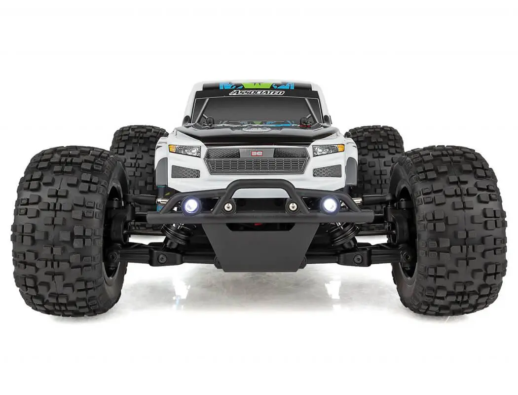 Team Associated’s 1:14 scale Reflex 14MT 4WD electric monster truck comes out of the box assembled and ready-to-run! It features a Reedy Power brushless speed control and motor, high-torque digital steering servo, and 2.4GHz radio system. With all that power available at your disposal, you know this monster truck was designed with performance in mind. The versatility offered by the all-terrain tires, adjustable wheelie bar, turnbuckles, caster blocks and rear hubs make the Reflex 14MT ready for any terrain you can throw at it.