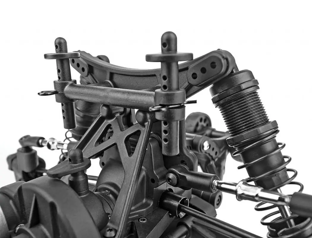 Additional features include full metal diff ring and pinion gears, three sealed differentials, aluminum steering rack, lightweight aluminum center driveshaft, and durable, impact-absorbing front bumper with LEDs. With the Reflex 14MT RTR you can now have big performance in a small scale Ready-To-Run package!