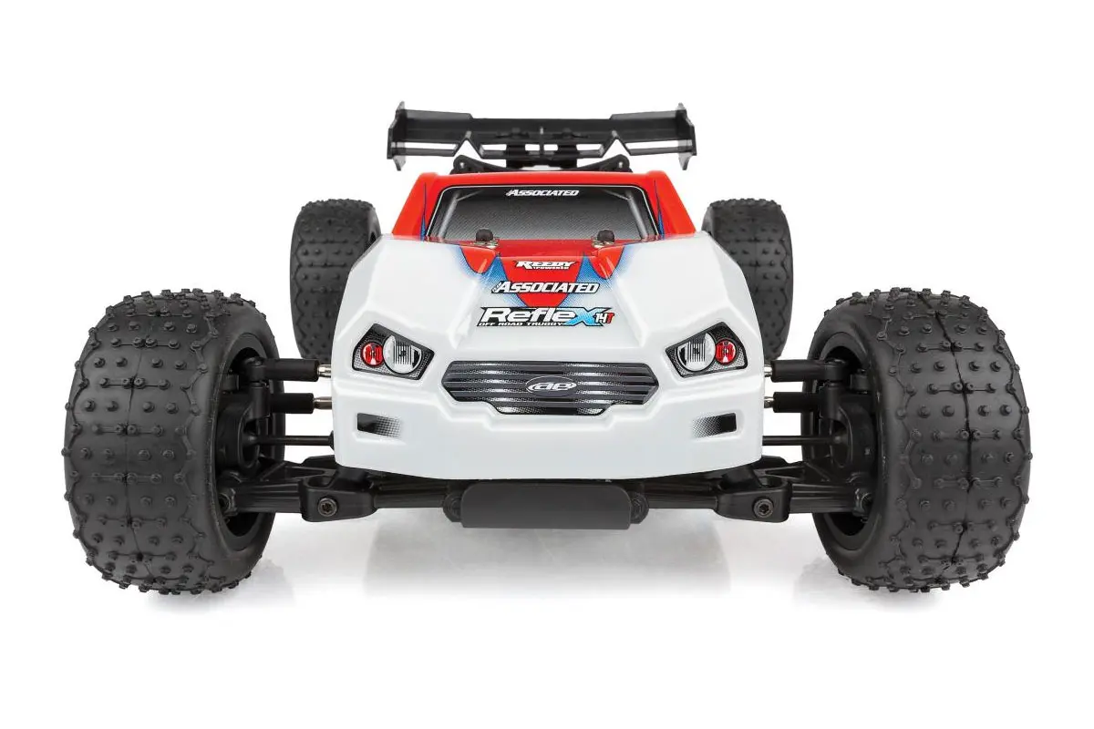 Team Associated’s 1:14 scale REFLEX 14T 4WD electric truggy comes out of the box already assembled, with a Reedy Power brushless speed control, brushless motor, high-torque digital steering servo, and 2.4GHz radio system. With all that power at your disposal, the truggy’s design effortlessly channels it into 4WD fun! The adjustability offered by the turnbuckles, caster blocks, and rear hubs make the REFLEX 14T ready for any terrain you can run on. Additional features include three sealed differentials, aluminum steering rack, and lightweight aluminum center driveshaft. Adding a battery pack of your choice to the REFLEX 14T RTR, you can now have big performance in a small-scale Ready-to-Run package! Think small. Win big.