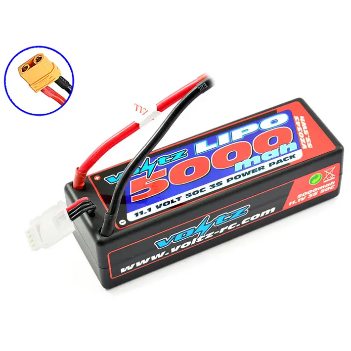 Experience the rugged durability of Voltz RC LiPo power with this 5000mAh 11.1V 50C hard case low profile lithium polymer battery suitable for all radio control vehicles. The hard shell provides extra protection for the battery, allowing the RC car to be driven to its extremes whilst maintaining great power.