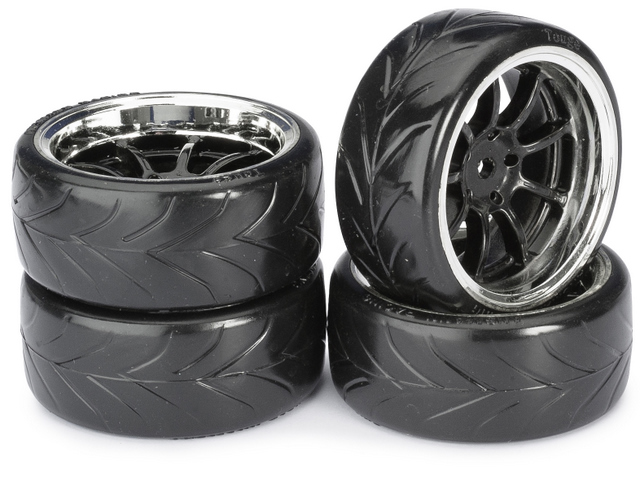Wheel Set Drift LP ” 9 Spoke / Profile A” black/chrome 1:10 (4 pcs)